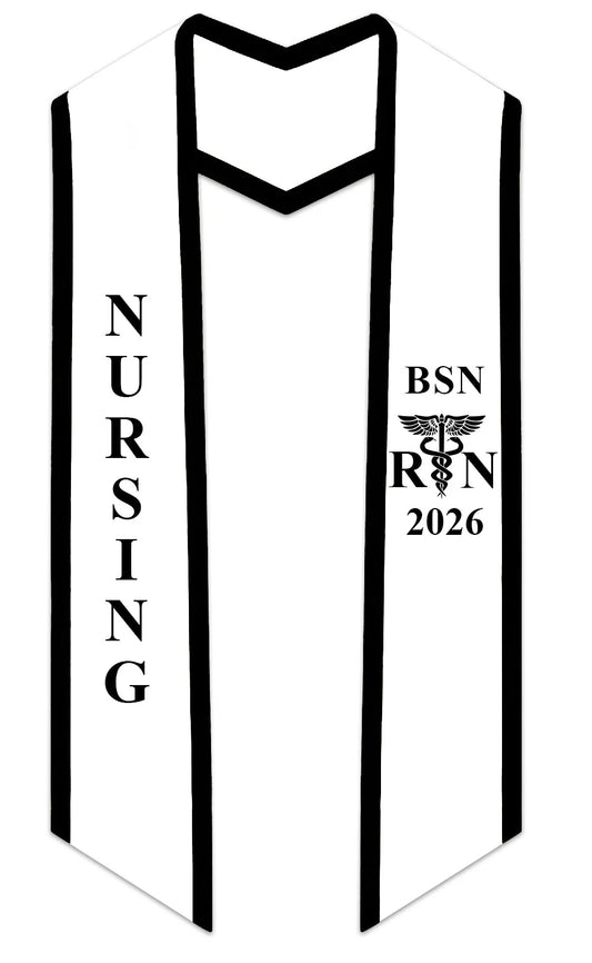Nursing stoles are a type of graduation stole specifically designed for nursing graduates. They are typically made of cloth and are draped over the shoulders of the nursing student's academic gown. Nursing stoles serve as a symbol of the student's academic achievements and their hard work in reaching the milestone of graduation in the field of nursing.